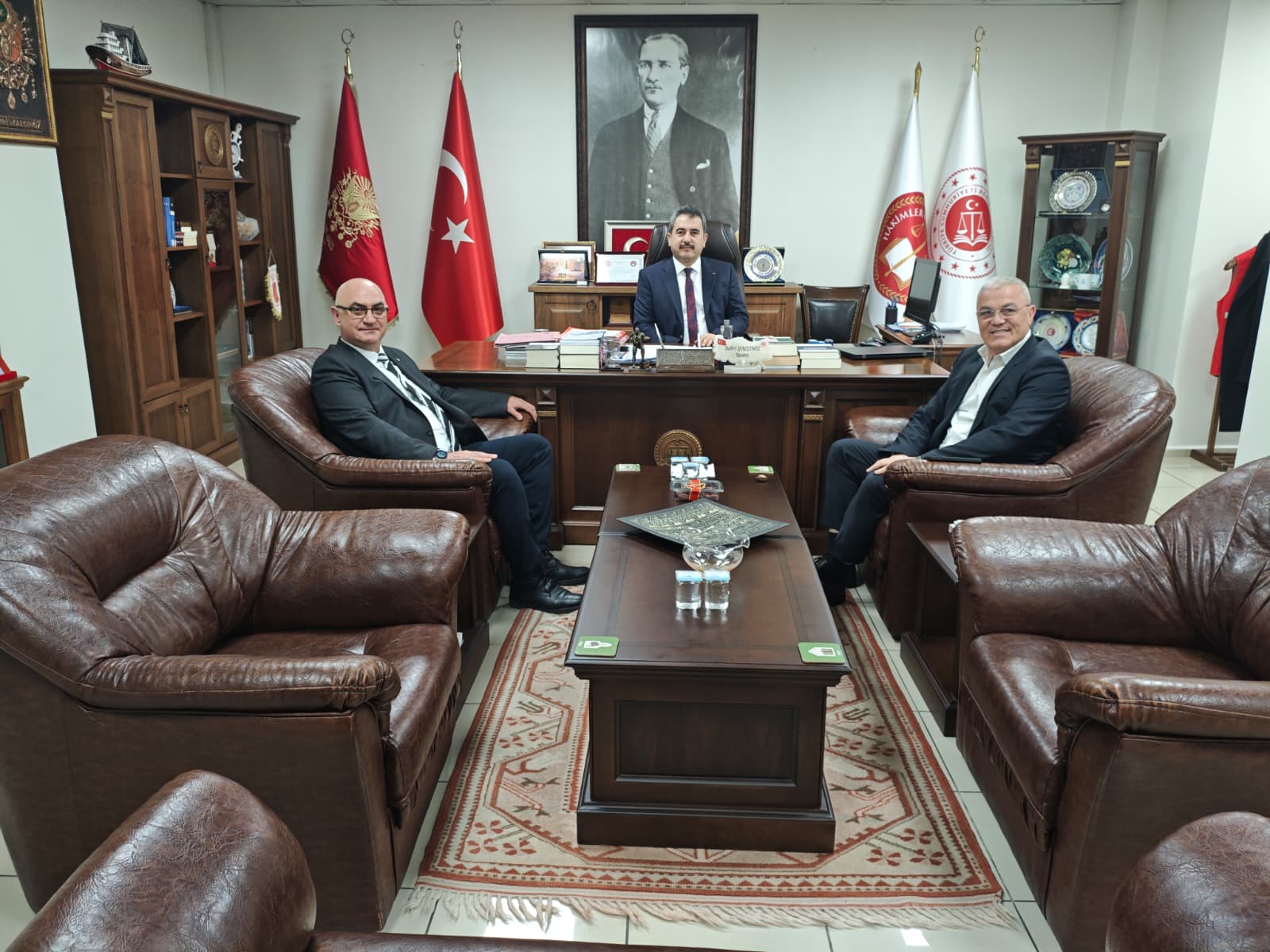 Turgutlu Ticaret Borsası Yönetim Kurulu Başkanı Selçuk Temel, Borsa üyelerimizden İSBA Tarım Gıda Hayvancılık İthalat İhracat Sanayi ve Ticaret A.Ş.’nin sahibi Alaettin Şenel ile birlikte Turgutlu Cumhuriyet Başsavcısı Bahri Yalçınöz’ü makamında ziyaret etti.Gerçekleştirilen ziyarette, Turgutlu’da tarım ve ticaret alanında yürütülen faaliyetler ile bölge ekonomisinin mevcut durumu hakkında değerlendirmelerde bulunuldu. Özellikle tarım sektörünün üretim, ihracat ve istihdam boyutları ele alınarak, kamu kurumları ile özel sektör arasındaki kurumsal iletişimin ve koordinasyonun önemi vurgulandı.Başkan Selçuk Temel, Turgutlu Ticaret Borsası’nın yürüttüğü çalışmalar hakkında bilgi vererek, üyelerin karşılaştığı sektörel gelişmeler ve beklentiler konusunda görüşlerini paylaştı. İSBA Tarım Gıda Hayvancılık İthalat İhracat Sanayi ve Ticaret A.Ş. sahibi Alaettin Şenel de faaliyet alanları ve sektöre ilişkin değerlendirmelerde bulundu.